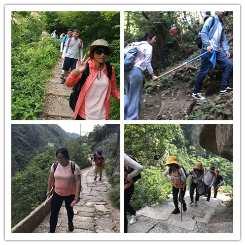 我们的行程共有两天,从江南第一关启程,途径黄毛培古村落、地方古宗祠、下雪堂(逍遥人家)、蓝天凹、永来村。在第一天的行程中,刚刚进入江南第一关,就迎来了一眼望不到尽头的台阶路,在中午的太阳暴晒下,我们在教练的“忽悠”中,一声声的“快到了快到了”,带着我们爬上了不知道是几百个还是几千个阶梯,这是两天中感觉最累的时候,感觉心跳一声声在耳边回荡,大家都筋疲力竭,除了沉重的喘息,脑子里只有一个念头——向前走,向上爬!
